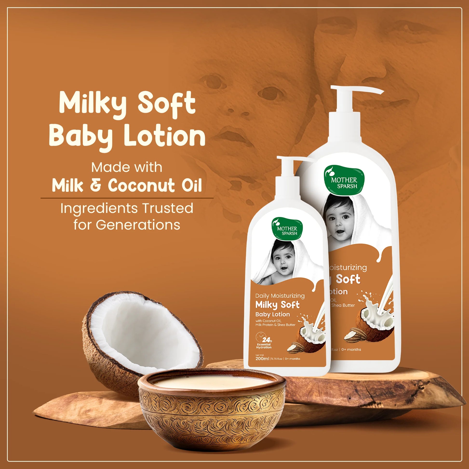 Milky Soft Baby Lotion is made with Age-Old Ingredients like Milk & Coconut Oil to moisturize & nourish your little one’s skin.