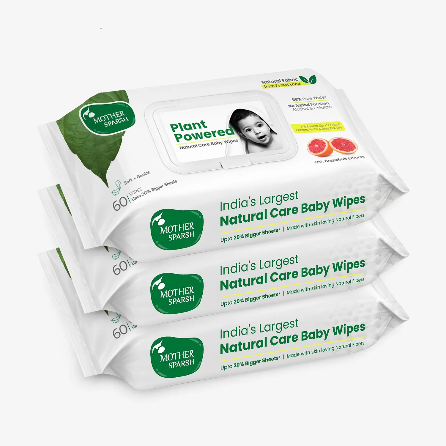 These all-natural grapefruit wipes provide a refreshing cleansing experience due to the calming properties of aloe vera and the soothing effect of grapefruit extract. Unlike ordinary wipes that leave behind residues, our wipes clean deeply while leaving skin feeling fresh and breathable. The wipes are 20% larger for effortless cleanups of sticky hands or diaper changes. They are lightly scented natural wipes that keep your little one feeling comfortable and revitalized with our gentle, plant-powered formula.